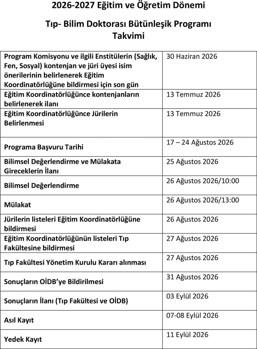 Tıp-Bilim Doktorası Bütünleşik Programı